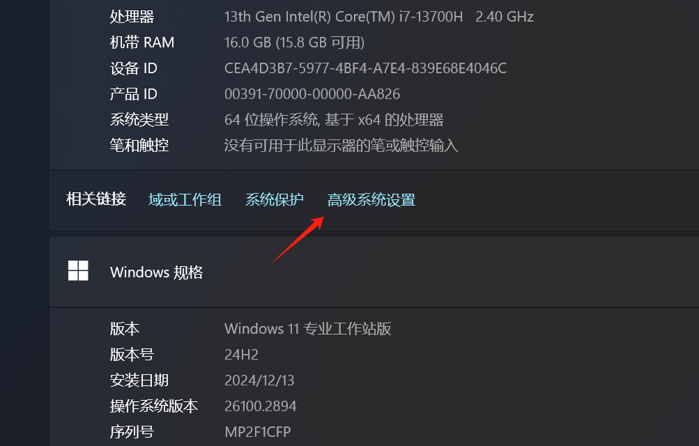 右键此电脑,点击属性,在设置中点击高级系统设置。