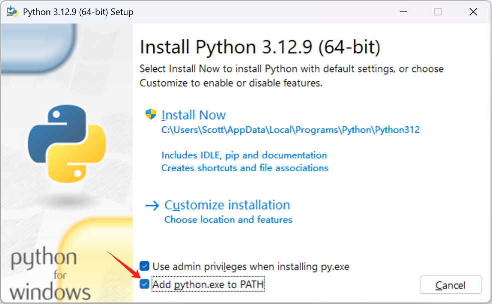 安装时注意勾选Add python.exe to PATH,创建环境变量。